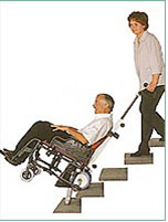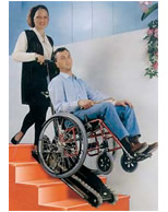 SCALAMOBIL - aparat za prijevoz nepokretnih osoba po stepenicama. Scalamobil je opremljen vlastitim kolicima ili stolicom za prijevoz osoba. Upravljanje i balans tokom transfera po stepenicama vrši druga osoba. Aparat se pokreće vlastitom baterijom i motorom. Kolica ili stolica zahtjevaju posebne nosače za povezivanje sa aparatom. Prije penjenja ili spuštanja potrebno je na kolicima skinuti velike kotače kako bi se olakšao prijelaz preko rubova stepenica.